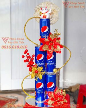 Tháp nước ngọt 3 tầng được làm từ các loại nước ngọt đóng lon cùng các phụ kiện trang trí như ruy băng, hoa giả, …xếp thành hình tháp 3 tầng. Loại tháp này được sử dụng để làm quà biếu tặng hoặc được sử dụng để trưng bày vào mỗi dịp Tết đến Xuân về.
